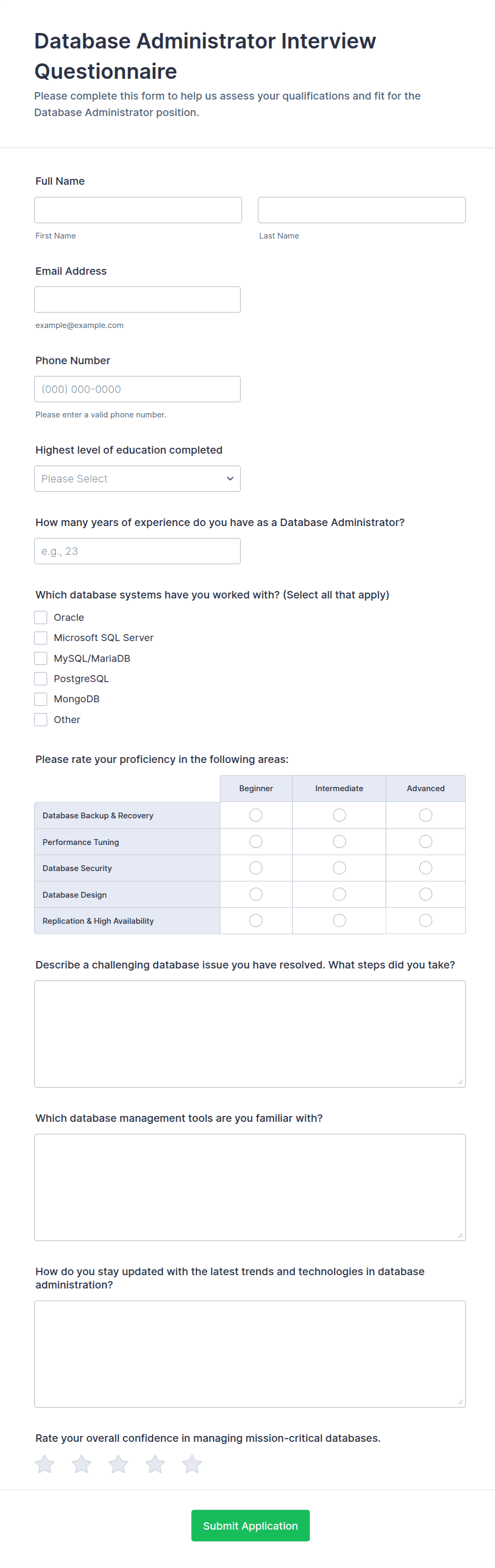 The Customer Support Interview Form helps HR professionals collect candidate information for customer service roles, streamlining the interview process and improving data collection.