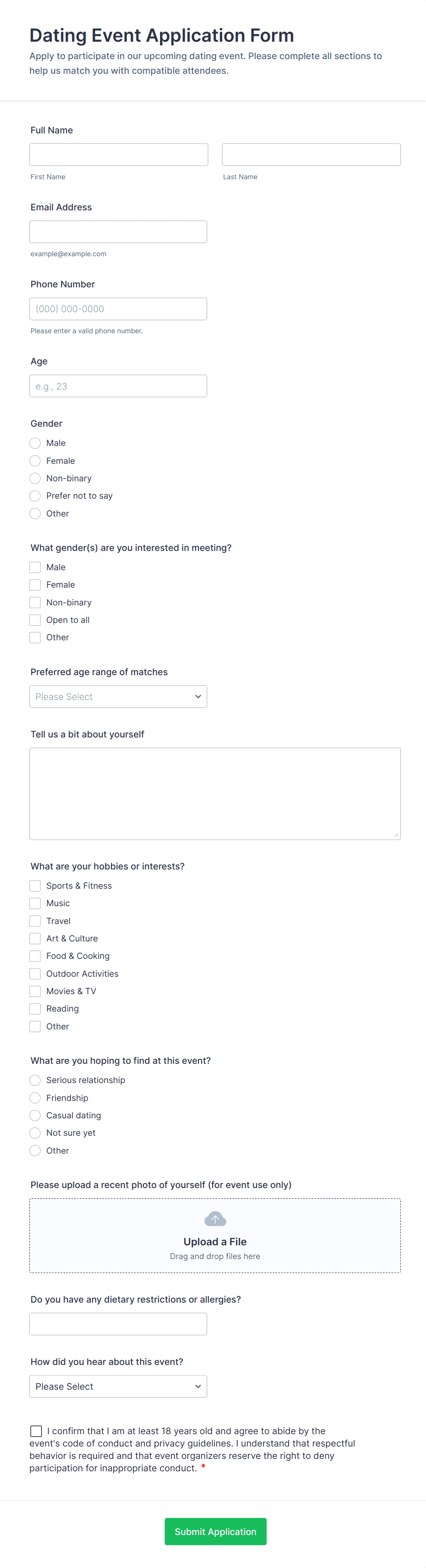 • Include event-specific fields like session selection, meal preferences, or T-shirt sizes.