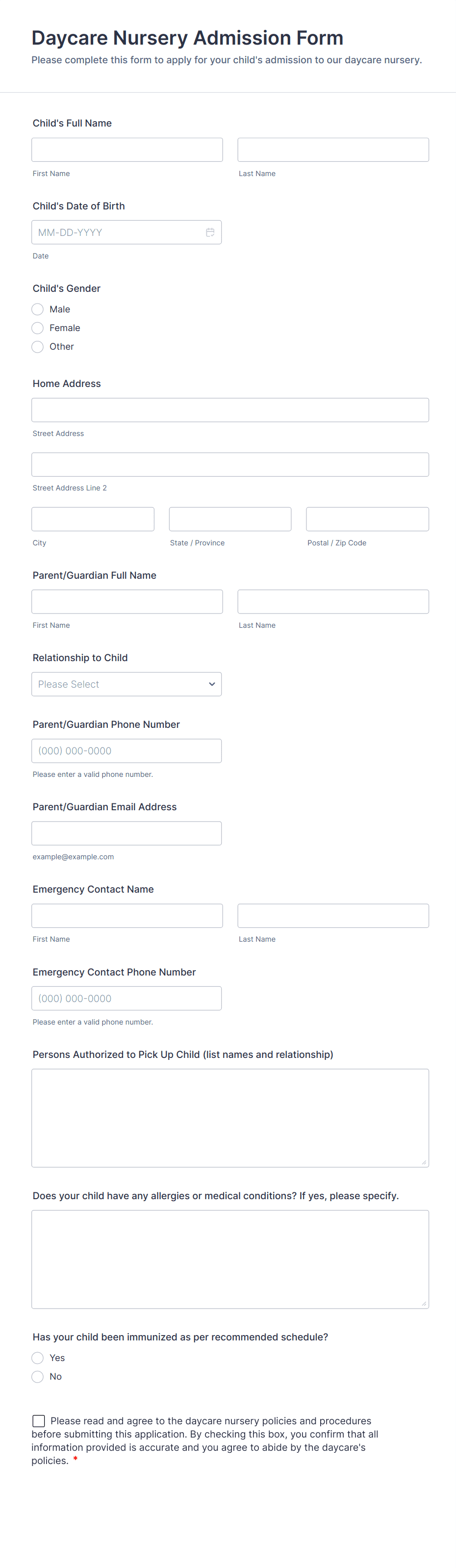 Daycare Application Form
