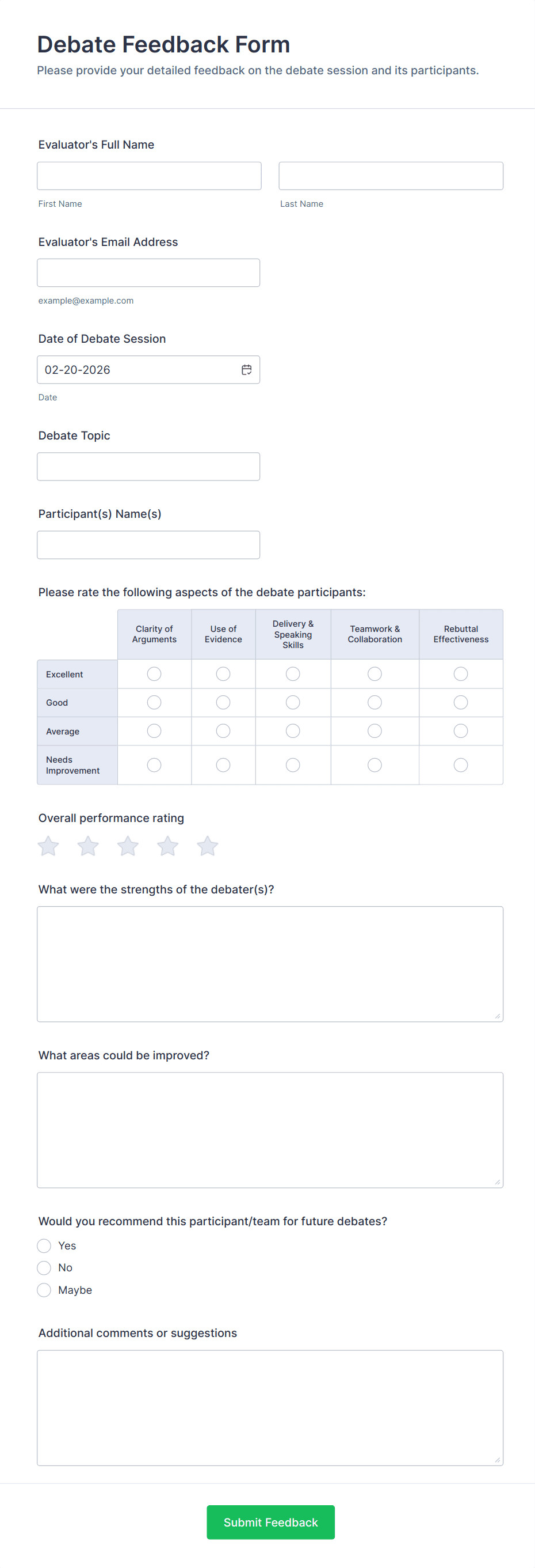 3. What information should be included in an Event Feedback Form?