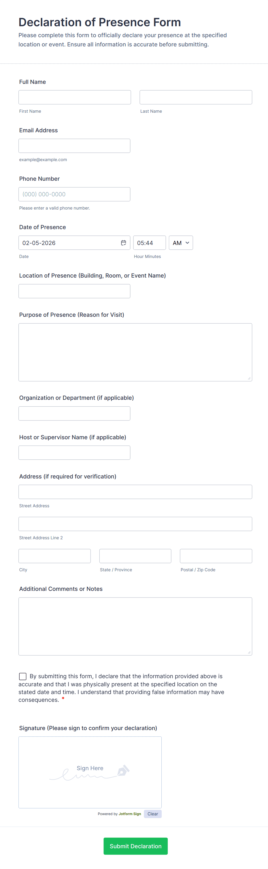 Creating a declaration form with Jotform is a straightforward process that allows you to collect official statements, consents, or disclosures efficiently. Whether you need a health declaration, legal acknowledgment, or parental consent, Jotform’s flexible platform ensures your form meets your exact requirements. Here’s a step-by-step guide to building a declaration form for any use case: