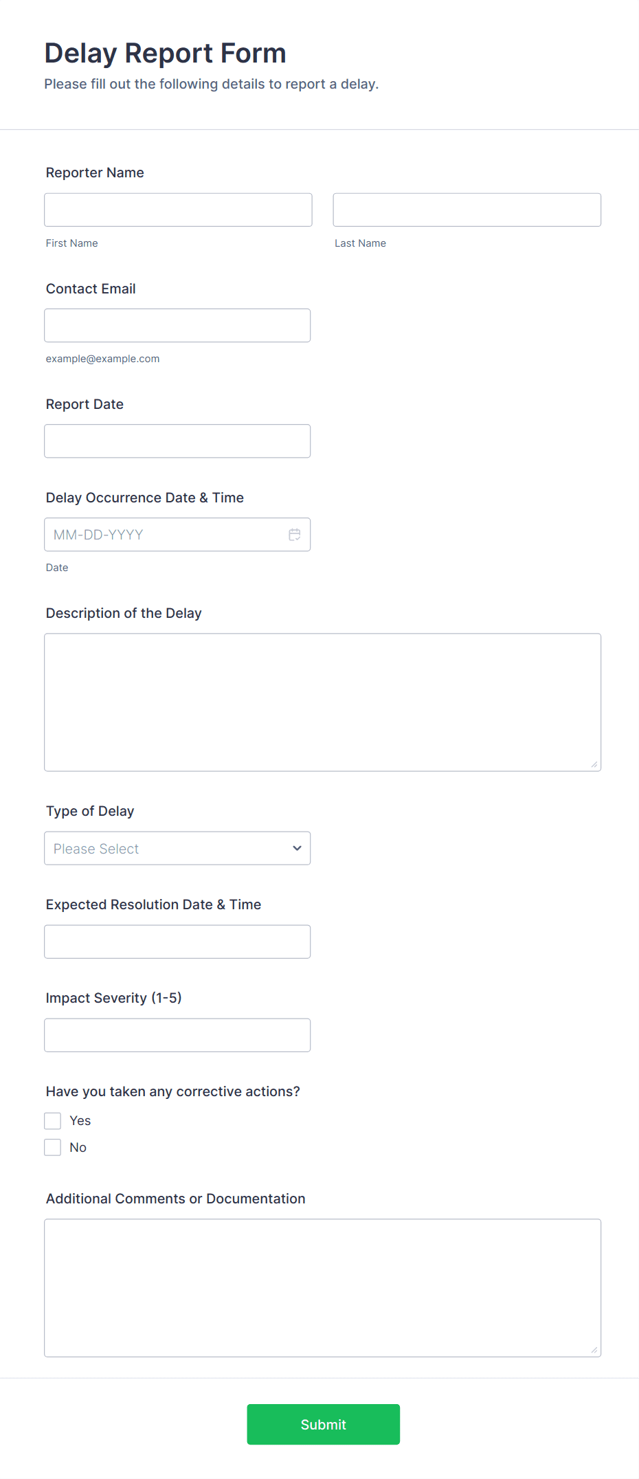- For business reports: Include fields for dates, metrics, comments, and file uploads.