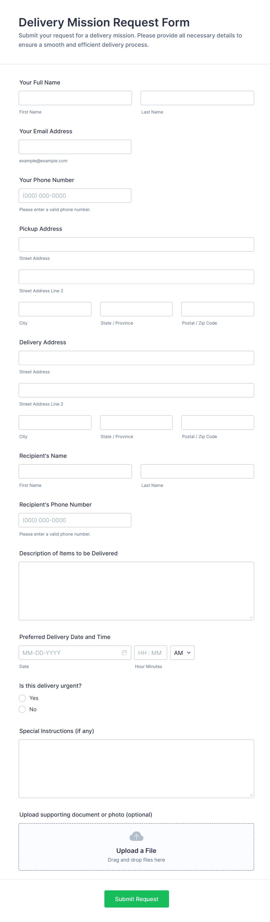 - Delivery Forms: Emphasize item descriptions, delivery addresses, and time windows.