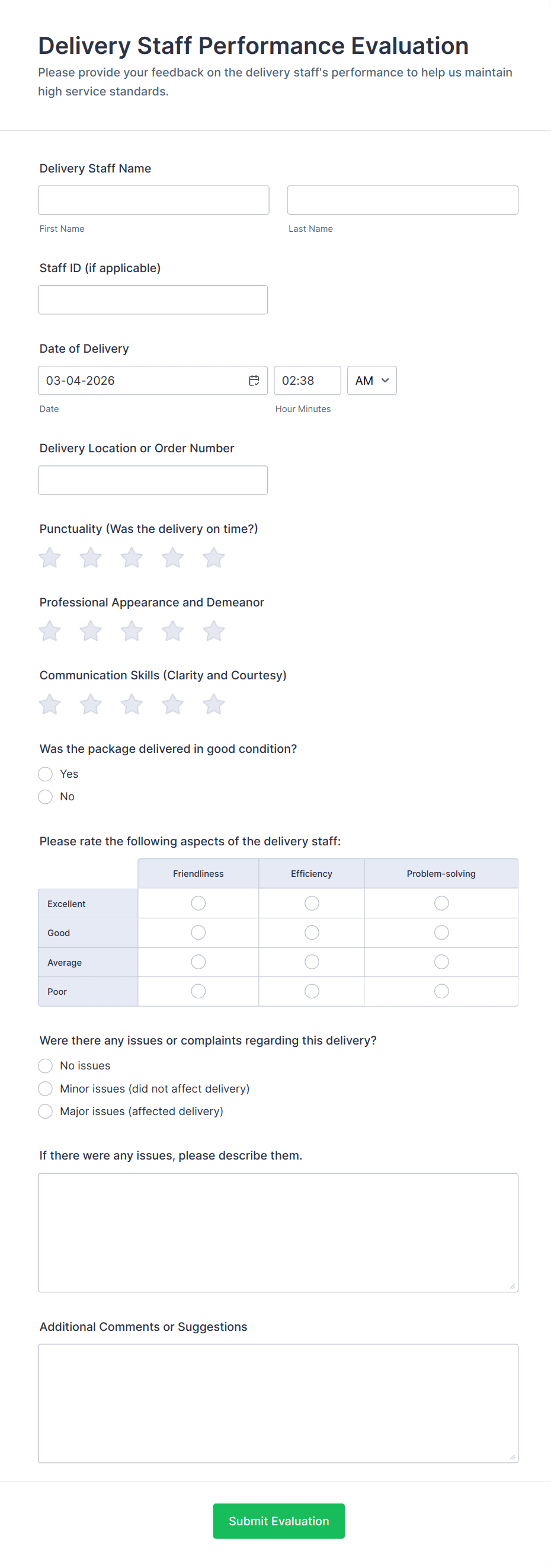 Manage your restaurant staff with a free, online evaluation form you can send to supervisors. Easy to customize, download, print, and share. No coding required.