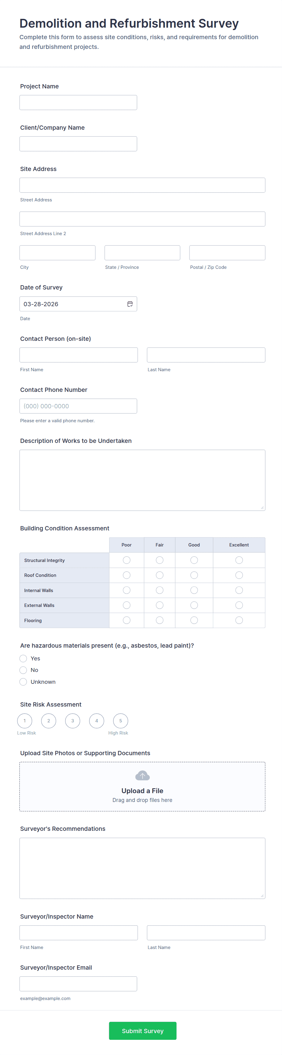 A Site Inspection Form is a form template designed to evaluate and report safety issues at construction sites.