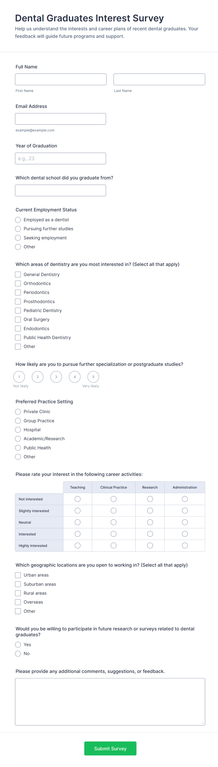 - For teacher or staff surveys: Include self-assessment fields, peer review sections, and narrative response options.