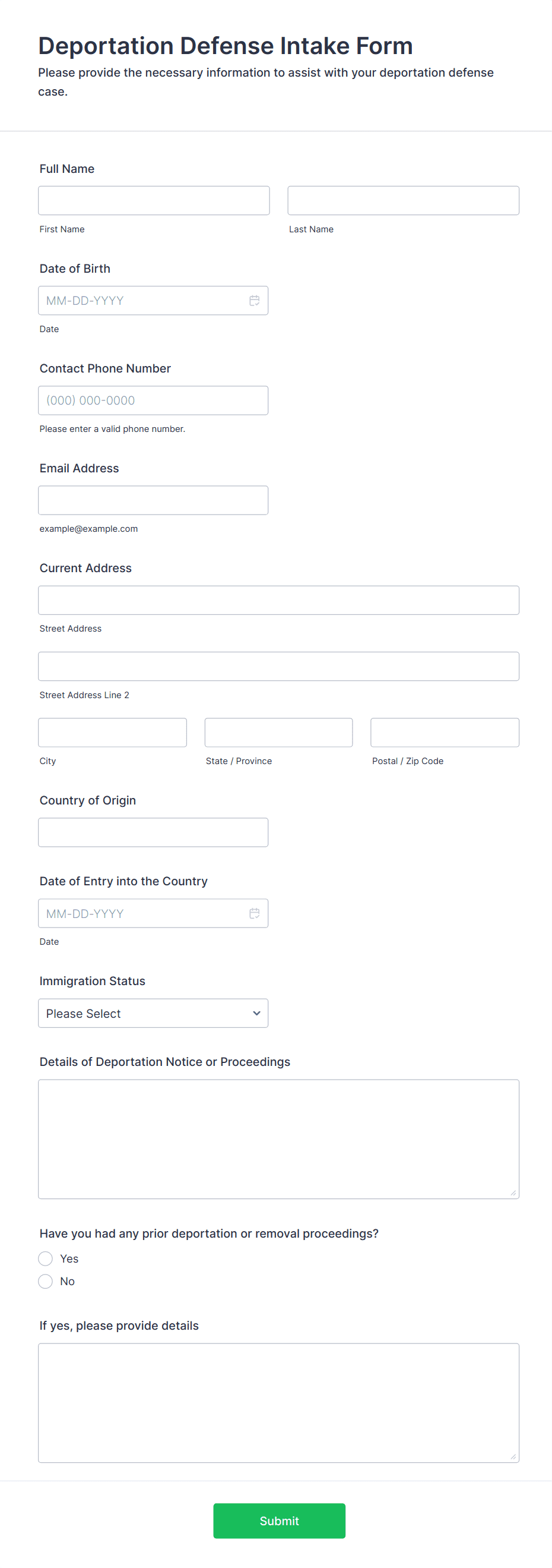 Intake forms are essential tools used to gather preliminary information from clients, patients, customers, or participants before providing a service or beginning a process. These forms streamline the onboarding process by collecting relevant details such as contact information, background data, preferences, and specific needs. Intake forms are widely used across various industries, including healthcare (patient intake), legal (client intake), education (student intake), human resources (employee onboarding), and service-based businesses (client consultations). By standardizing the information-gathering process, intake forms help organizations ensure consistency, improve efficiency, and deliver personalized experiences.