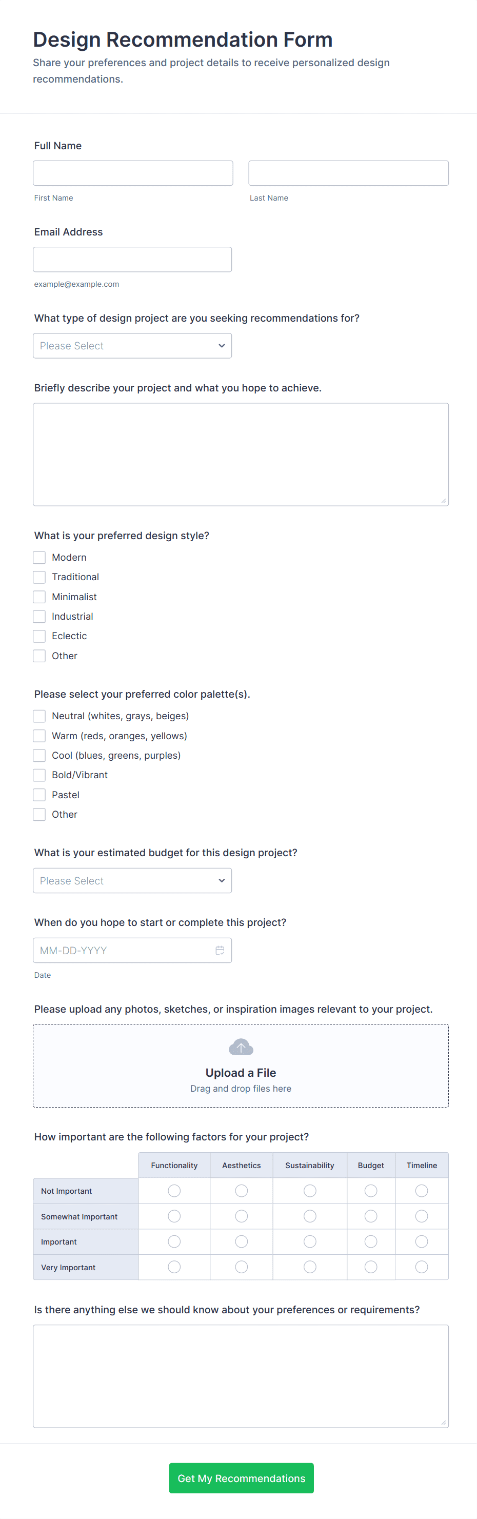 A Product Recommendation Form is a form template designed to enhance the customer experience by providing personalized recommendations that align with their preferences.