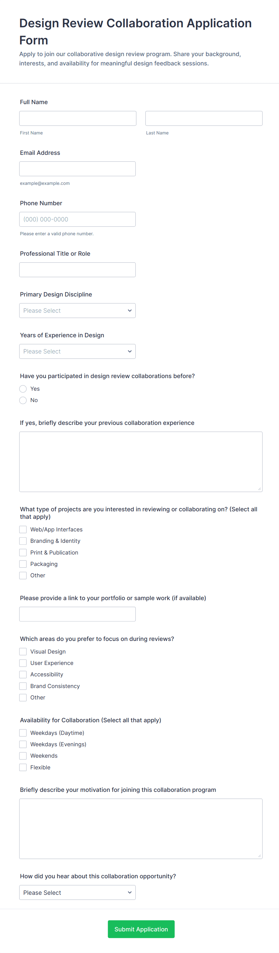 • For job applications, include fields for personal information, education, work experience, references, and file uploads for resumes or cover letters.