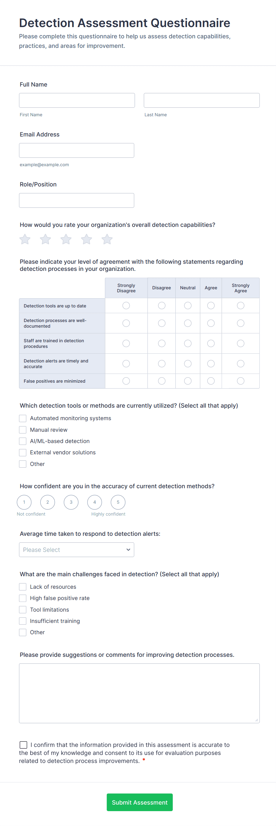 - Content and fields differ based on the objective: e.g., a health screening questionnaire may include medical history and symptom checklists, while a customer feedback form focuses on satisfaction ratings and open-ended comments.