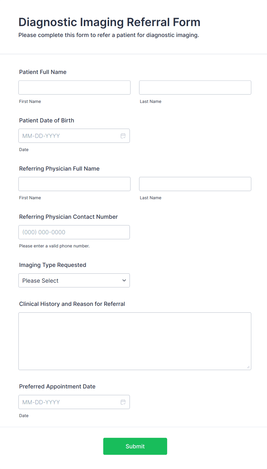 A patient referral form is a document that is used by medical professionals in order to refer a patient to another doctor.