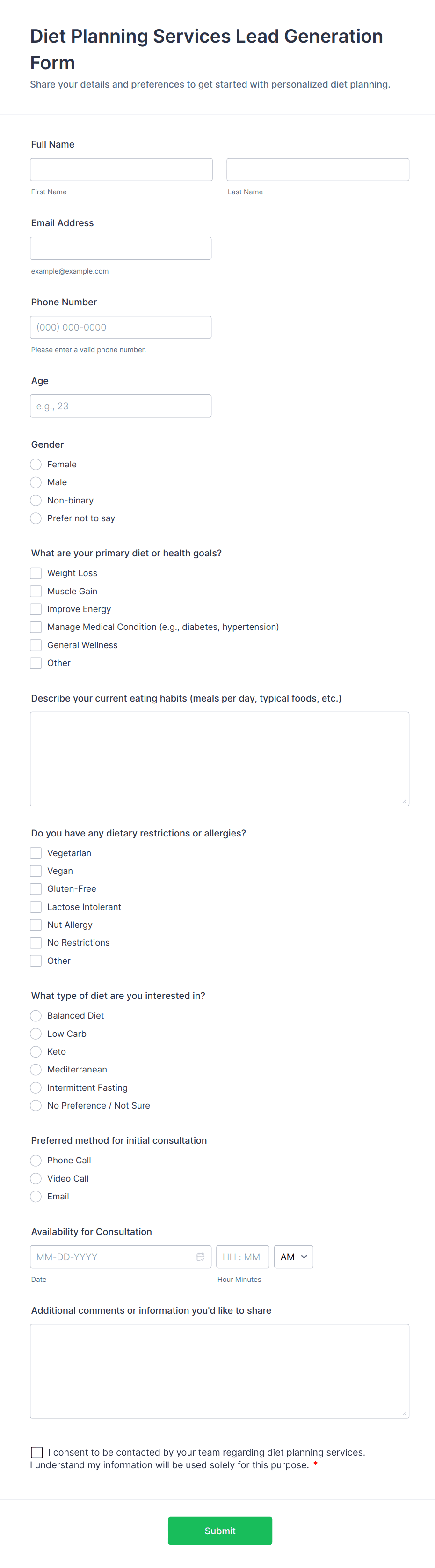 • Contact or inquiry forms for service-based businesses.