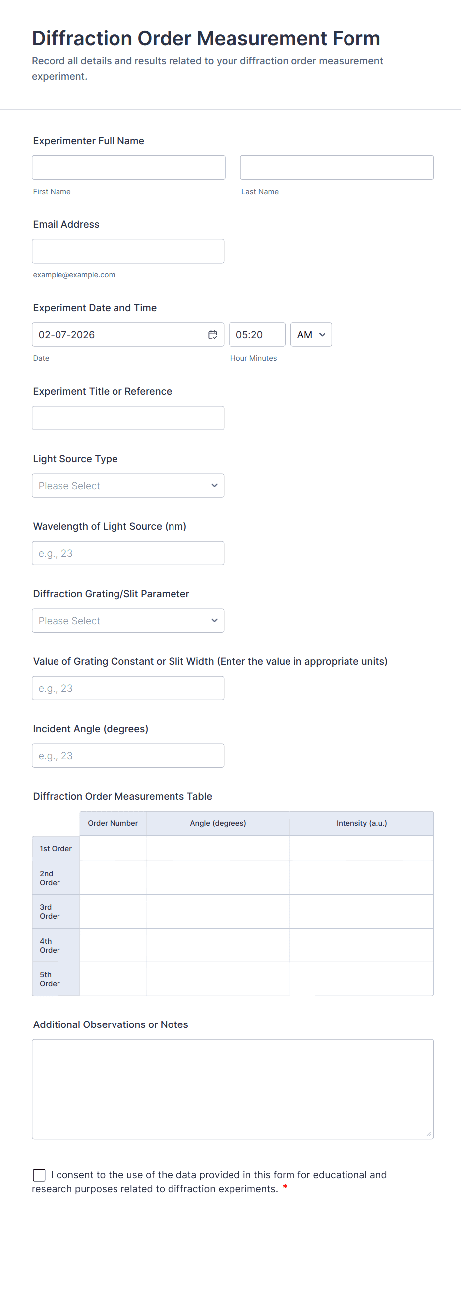 The Lab Experiment Consent Form helps educational institutions and research facilities obtain informed consent from participants, ensuring ethical standards in data collection and experiment management.