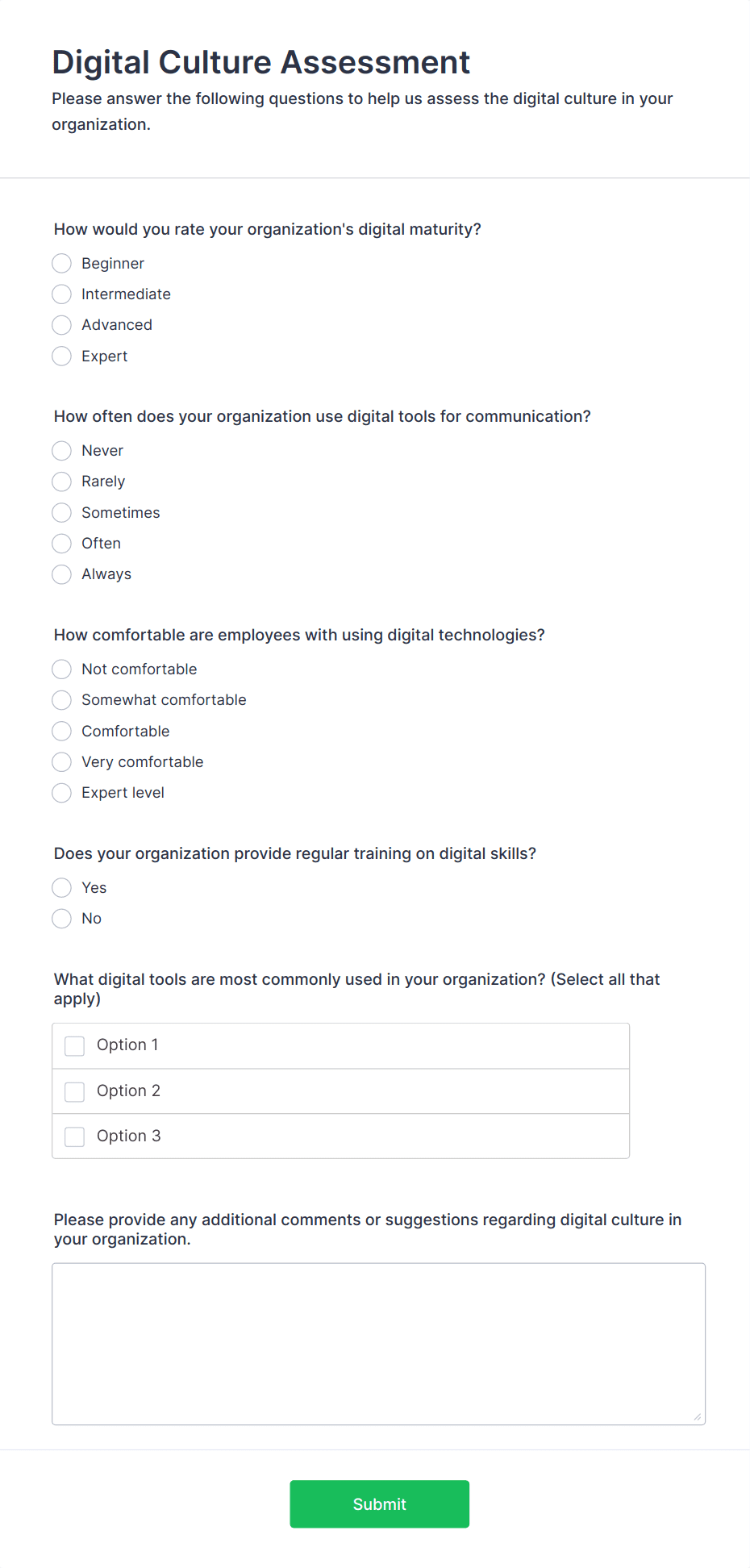 Get to know your employees with a free online survey. Collect responses from any device. Customize in minutes with no coding. Sync responses to 100+ popular apps.