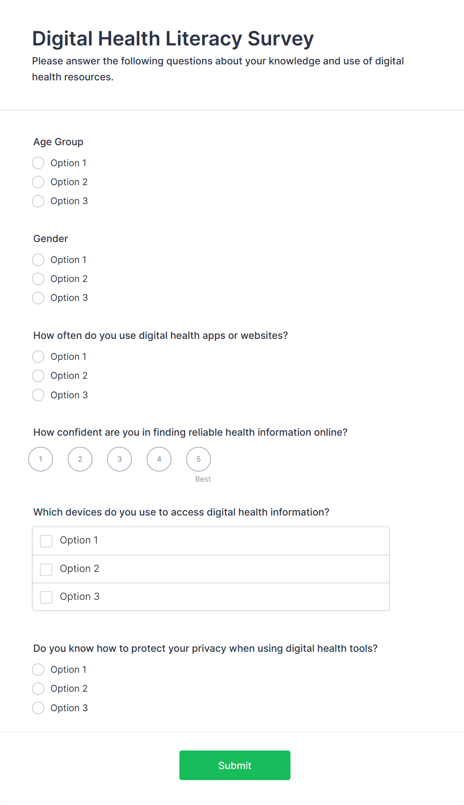• Mental Health Screenings: Use validated scales (e.g., PHQ-9, GAD-7) and sensitive question logic.