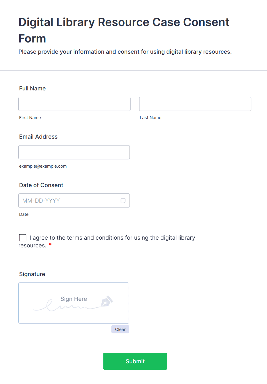 - Include specific fields for the type of information to be shared (e.g., photos, medical records, contact details).