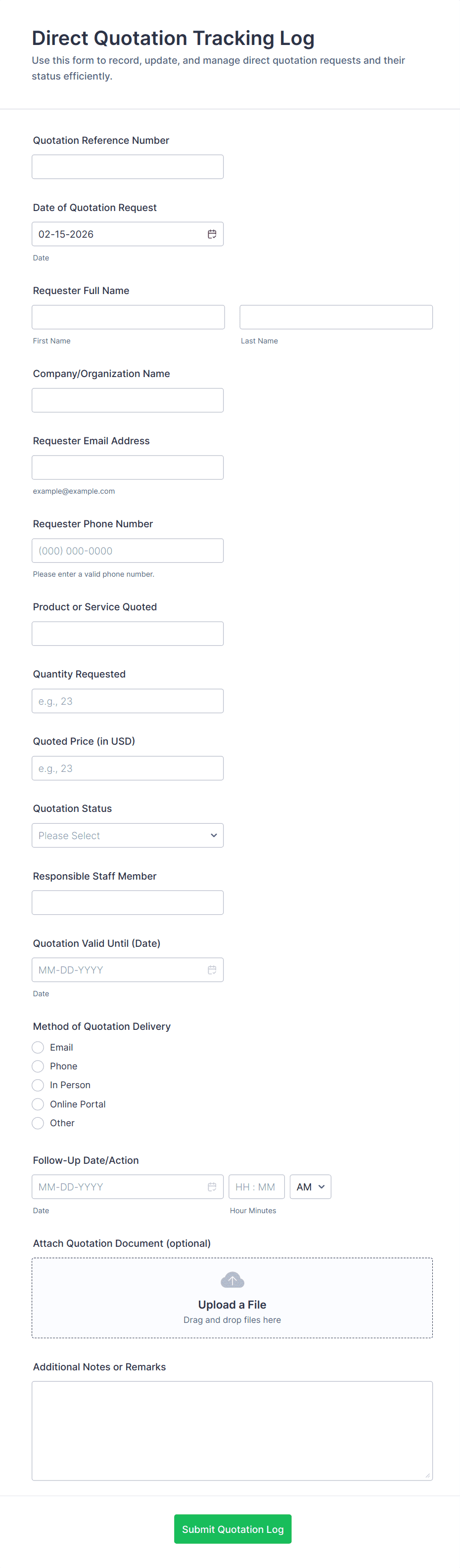 • For service-based quotes, include fields for location, preferred dates, and specific requirements.
