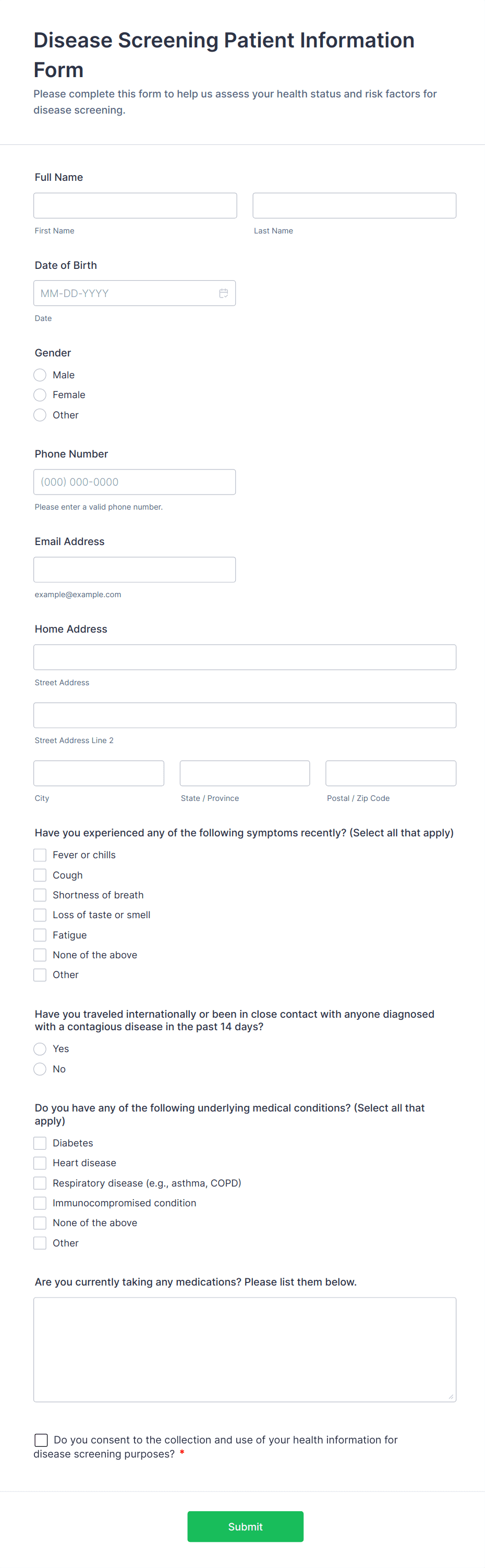 Register new patients for your practice with a free online Patient Intake Form. Great for telemedicine or telehealth. Option for HIPAA friendly features.