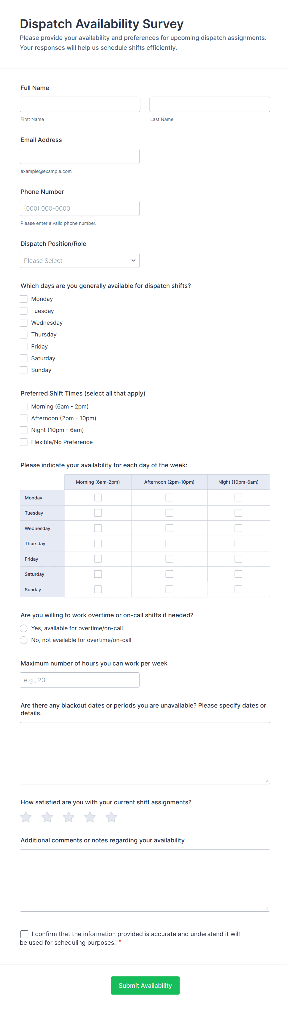 • For onboarding or exit surveys, add fields about the hiring process, training, or reasons for leaving.
