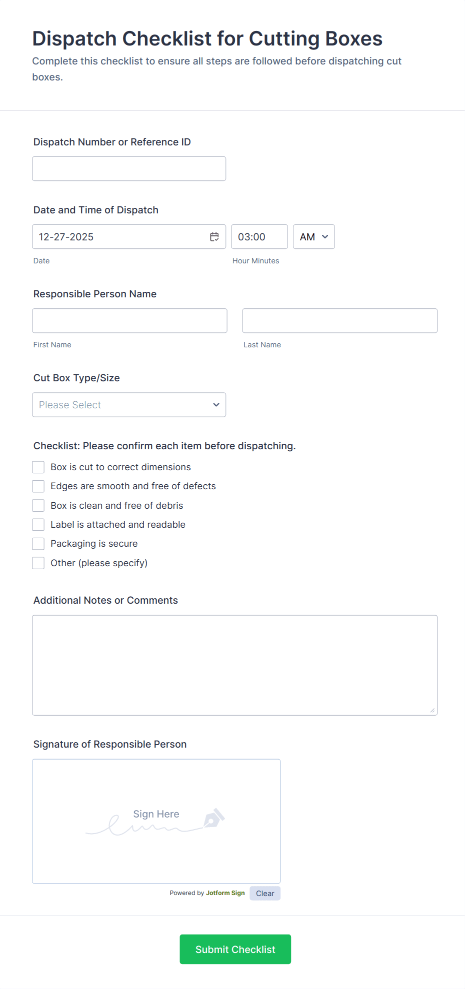 • Enable autoresponder emails to confirm receipt to the person completing the checklist.
