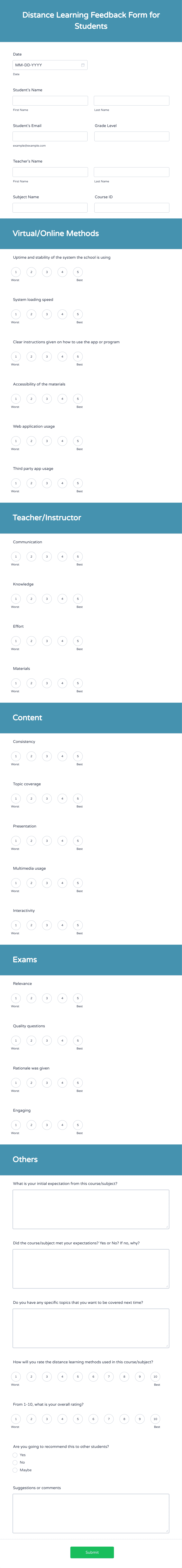Do you want to know your student thoughts during their class? Students will give feedback about the course instructors with this instructor feedback form.