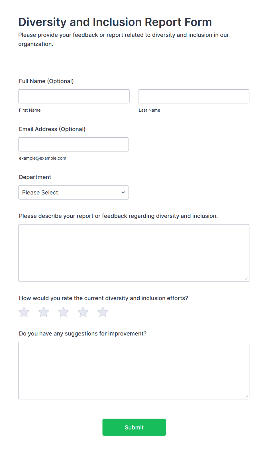 • For onboarding or exit surveys, add fields about the hiring process, training, or reasons for leaving.