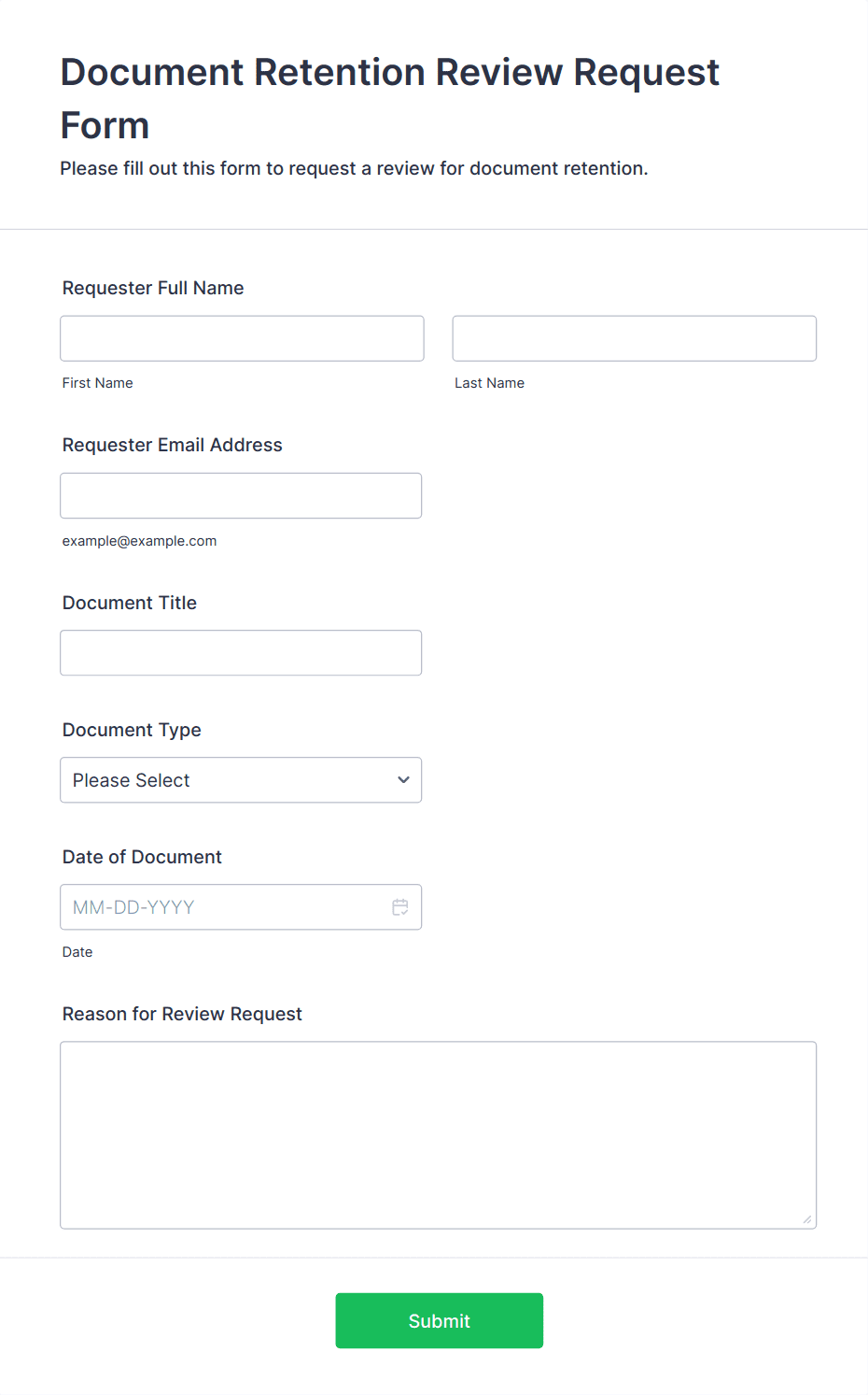 Request forms are essential tools for gathering and organizing information when someone needs to ask for something — whether it’s a service, resource, approval, or support. These forms streamline the process of submitting and managing requests in a wide range of scenarios, such as equipment requests, maintenance requests, time-off requests, IT support, purchase orders, facility bookings, and more. By providing a standardized way to collect all necessary details, request forms help organizations ensure that every request is clear, trackable, and actionable, reducing miscommunication and delays.