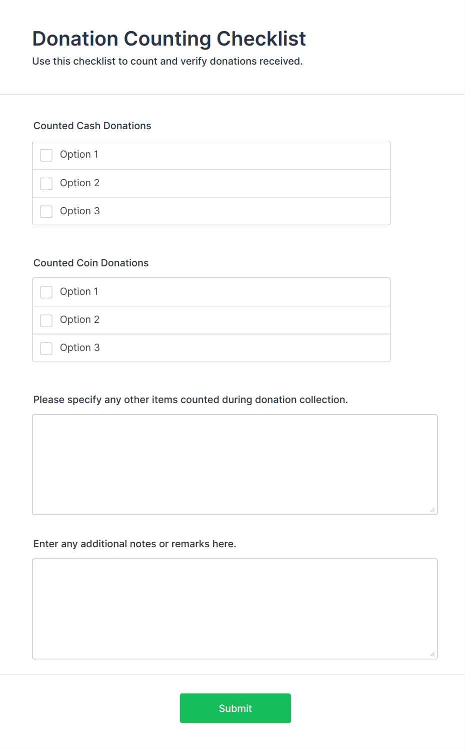 • General Donation Forms: Focus on donor details, donation amount, and payment method.