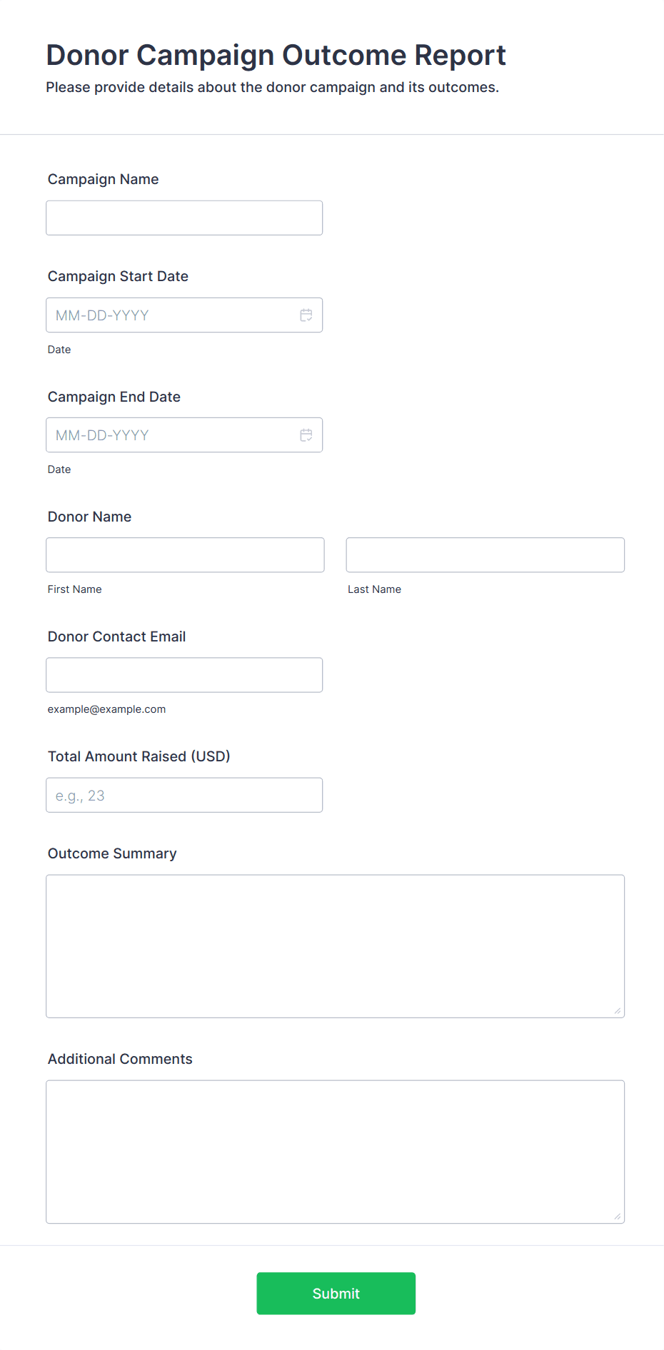 • Donation amount (with options for preset amounts or custom entry)