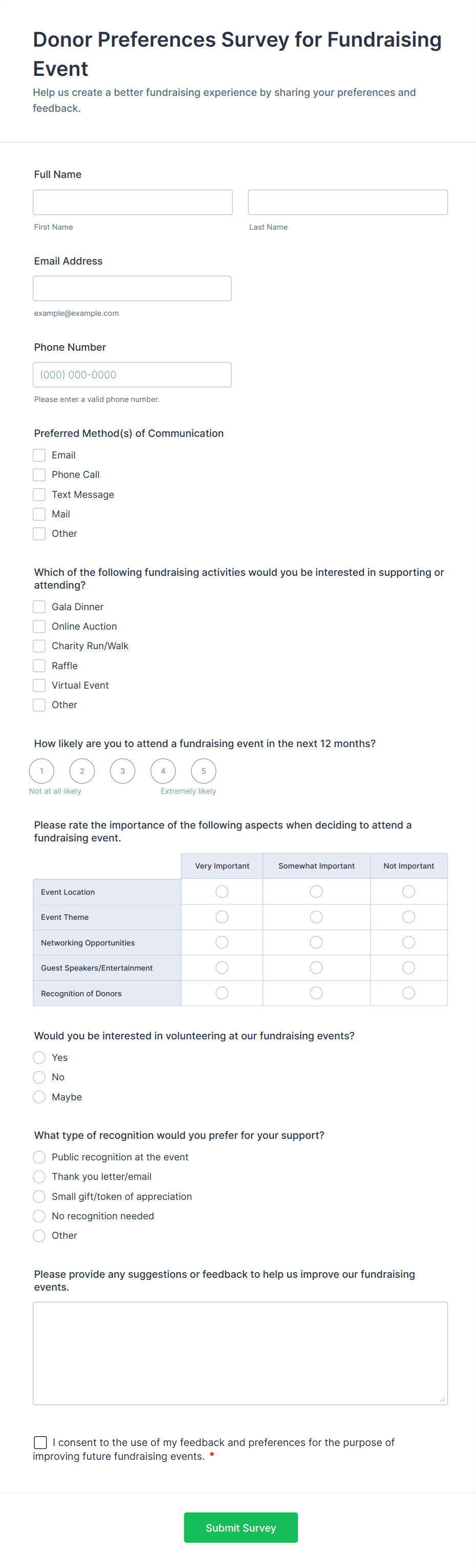 Looking for a way to gather donations for your cause? Whether you’re part of a nonprofit, charity, or raising funds for your organization, seamlessly collect payments from any device with Jotform’s free Fundraiser Forms. All of our forms integrate with 30+ payment gateways, including popular processors like Square, Stripe, and PayPal, so you can receive donations online without paying any additional transaction fees to Jotform. Once you’ve chosen one of our readymade Fundraiser Forms, feel free to customize the design with our no-code builder. You can upload your logo, change fonts and colors, and make other design changes — then share your form with a link or embed it in your site to start collecting responses.