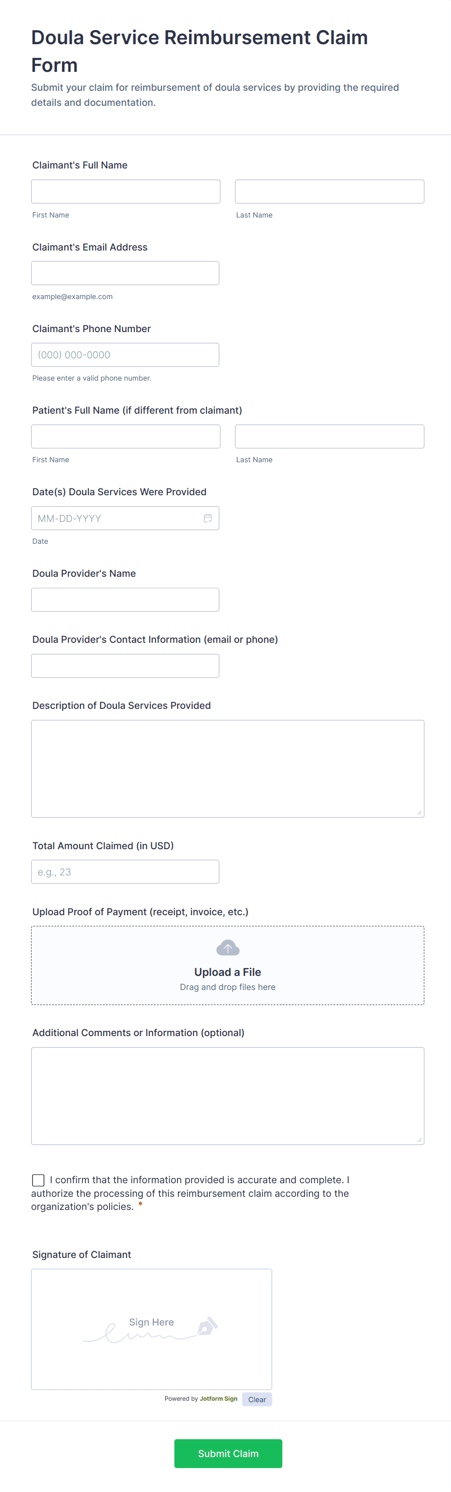 - For travel reimbursements, include fields for travel dates, destinations, and transportation details.