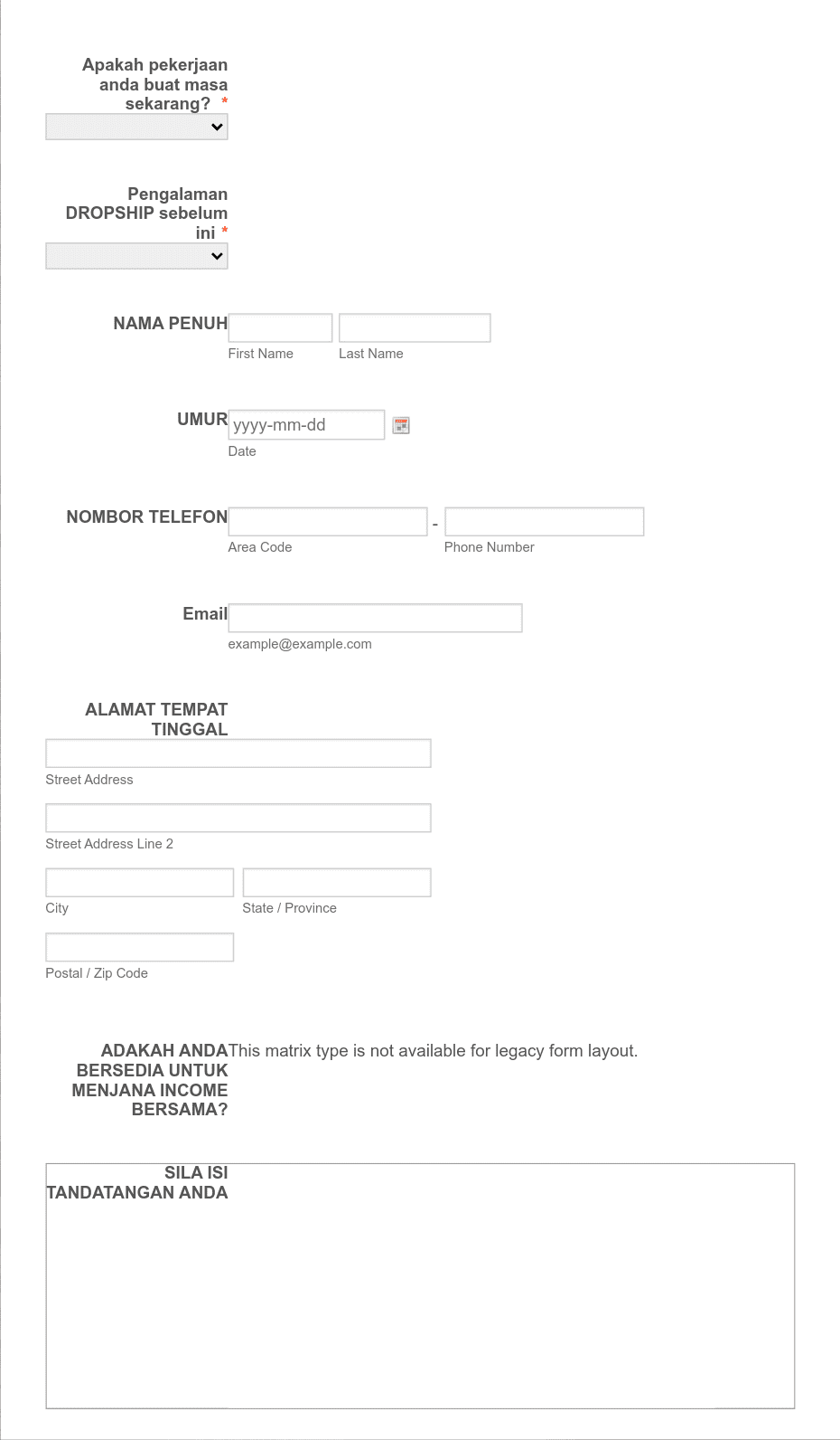 Online Interview Questionnaire Form