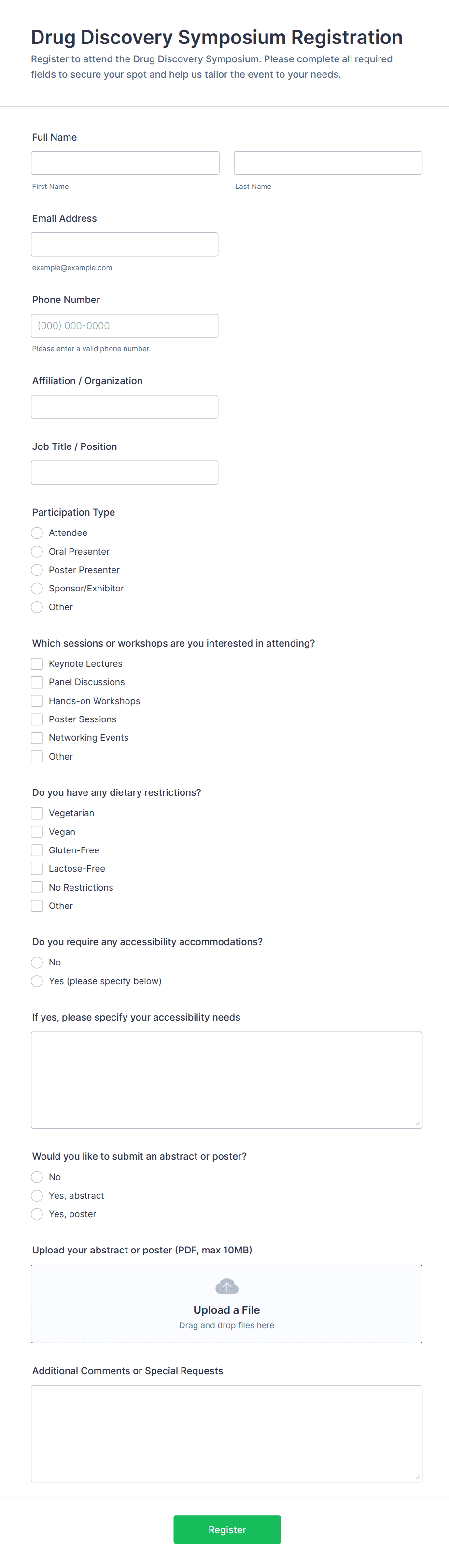 - Session or Workshop Selection (dropdowns or checkboxes)