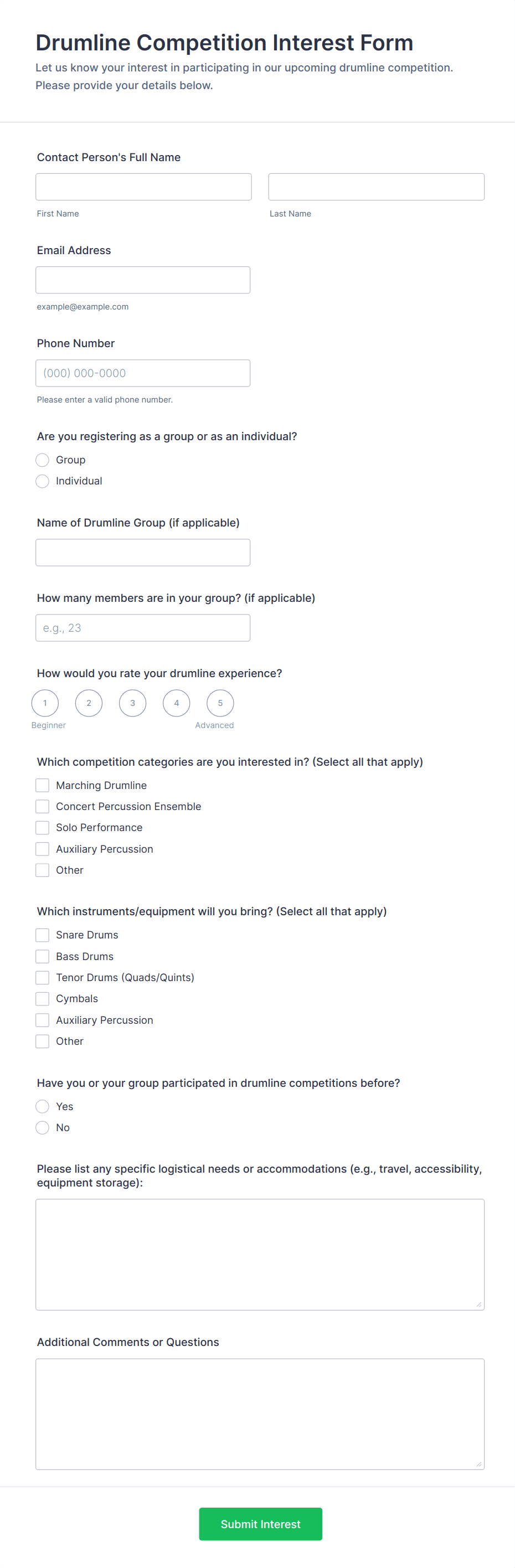 - Workshops and training sessions: Register participants, gather skill levels, and manage waitlists.