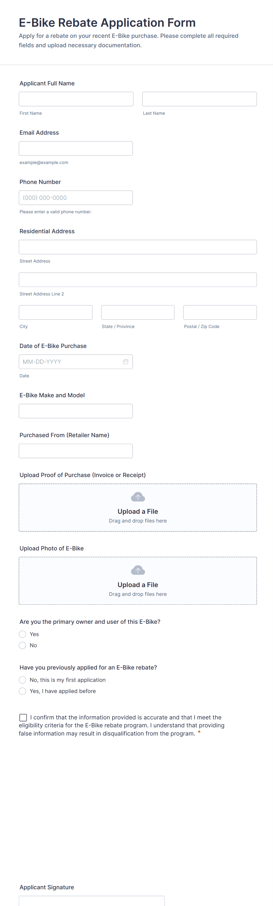 • Use conditional logic to show or hide fields based on previous answers, ensuring applicants only see relevant questions.