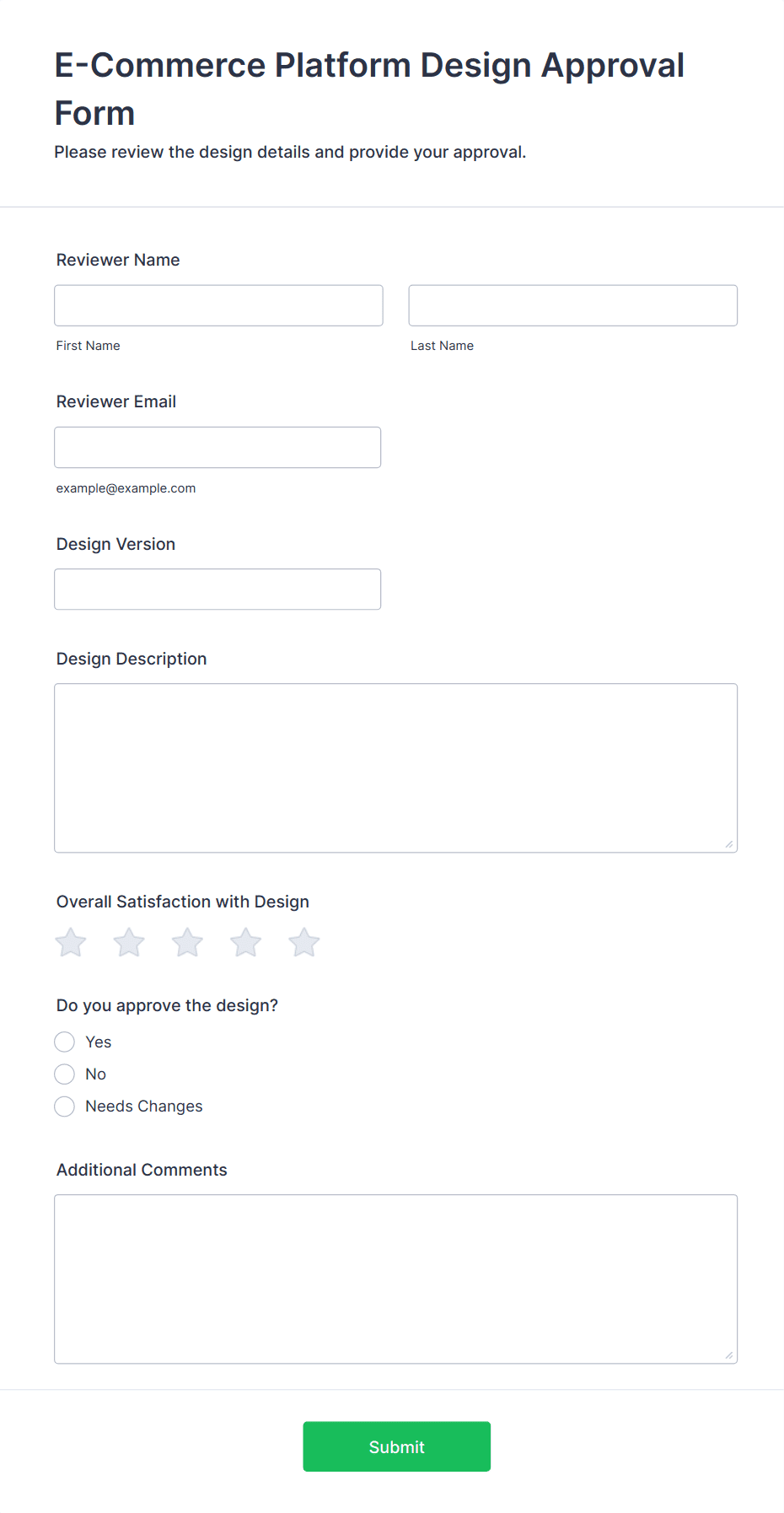 An e-commerce form template is a pre-designed online form that helps businesses collect orders, payments, and customer information for products or services sold online.