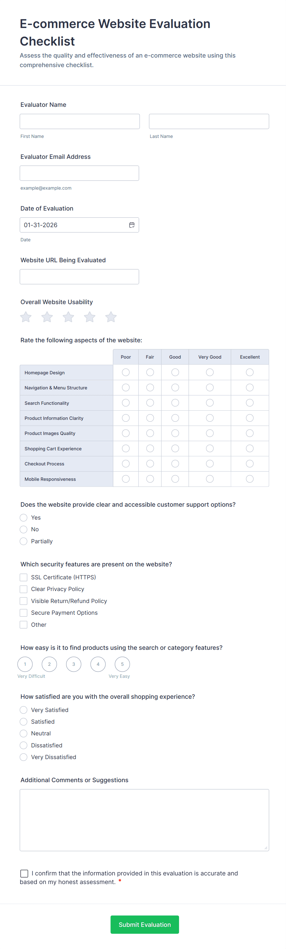 • For more complex checklists, add dropdowns, file upload fields (for attaching evidence or reports), or signature fields (for verification).