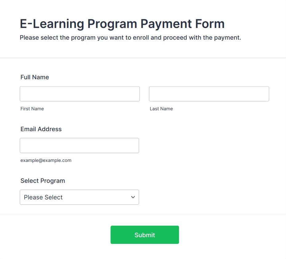 A payment form is an online form designed to securely collect payments, donations, or fees from users through integrated payment gateways.