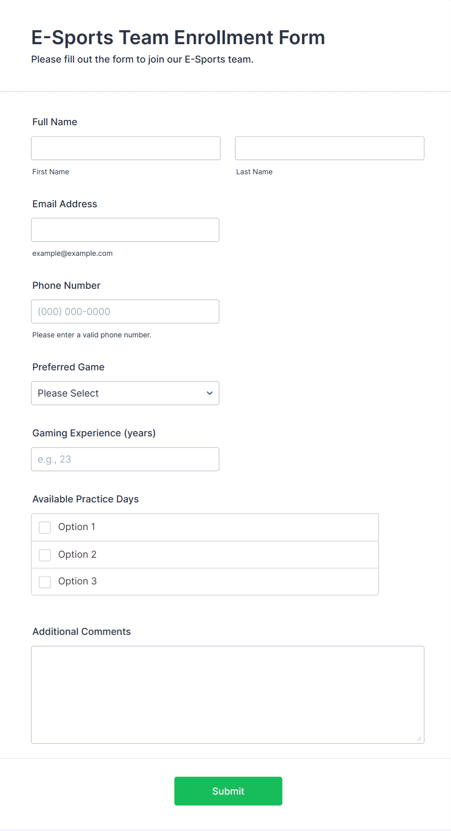 Register teams and individual players for your gaming tournament. Free customizable registration template. Integrate with Discord. Mobile-friendly. No coding.