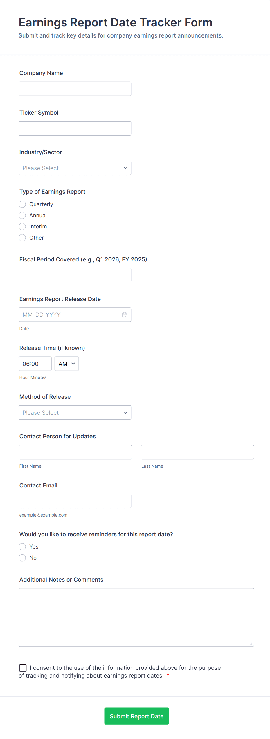 A tracking form is a digital tool used to record, monitor, and manage specific types of data over time, such as inventory levels, attendance, expenses, or project progress.