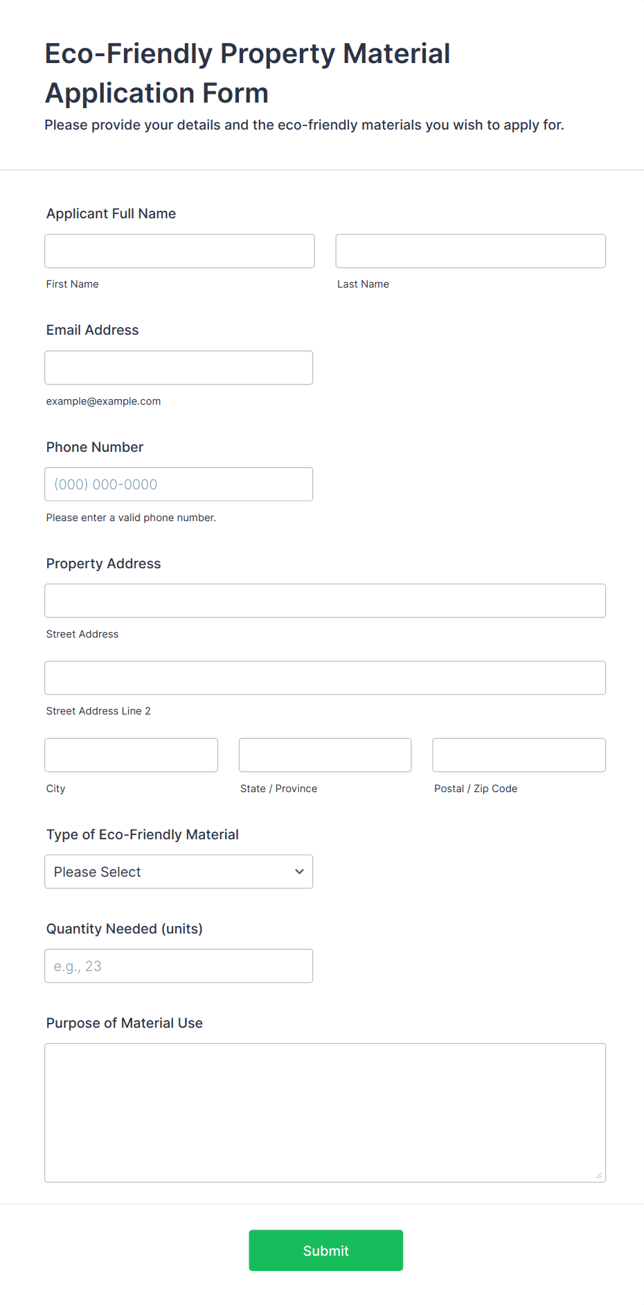 • Maintenance Requests: Tenant name, unit number, issue description, urgency level, file upload for photos.