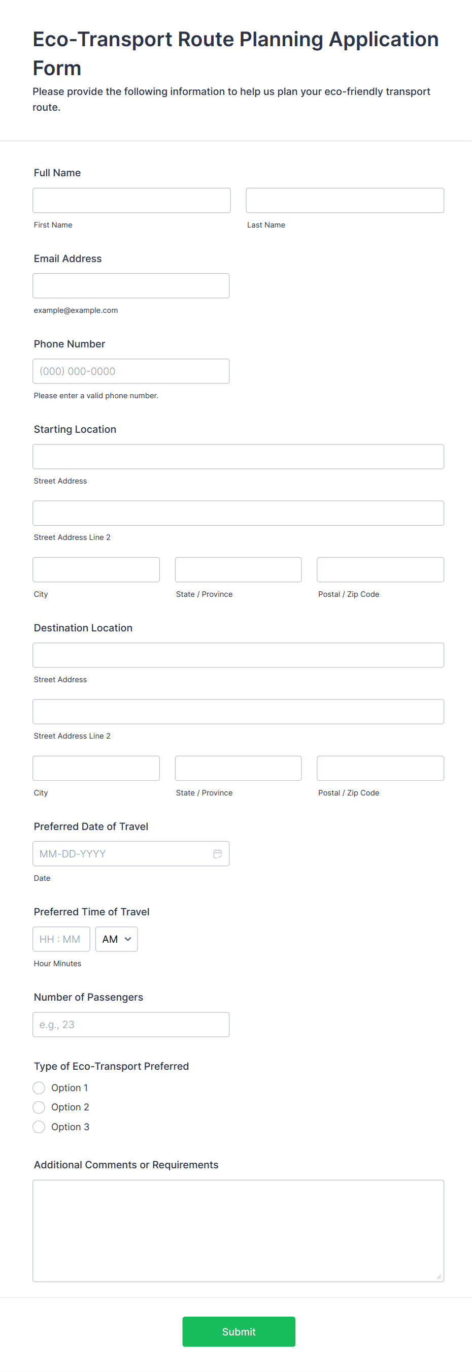 - Medical Transport Forms: Need patient details, mobility requirements, insurance info, and preferred vehicle type.