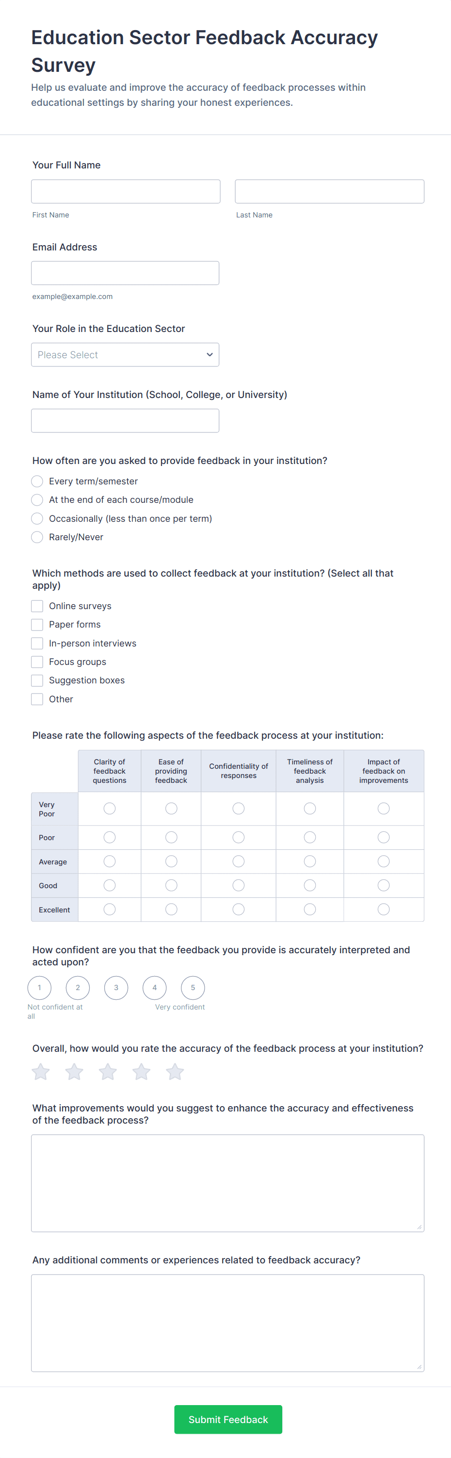 By following these steps, you can create tailored education surveys that gather meaningful feedback, support data-driven decisions, and foster a culture of continuous improvement in your educational community.