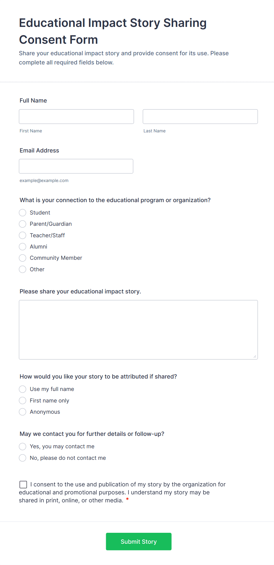 - Nonprofits collecting consent to share donor stories or testimonials on websites and social media.