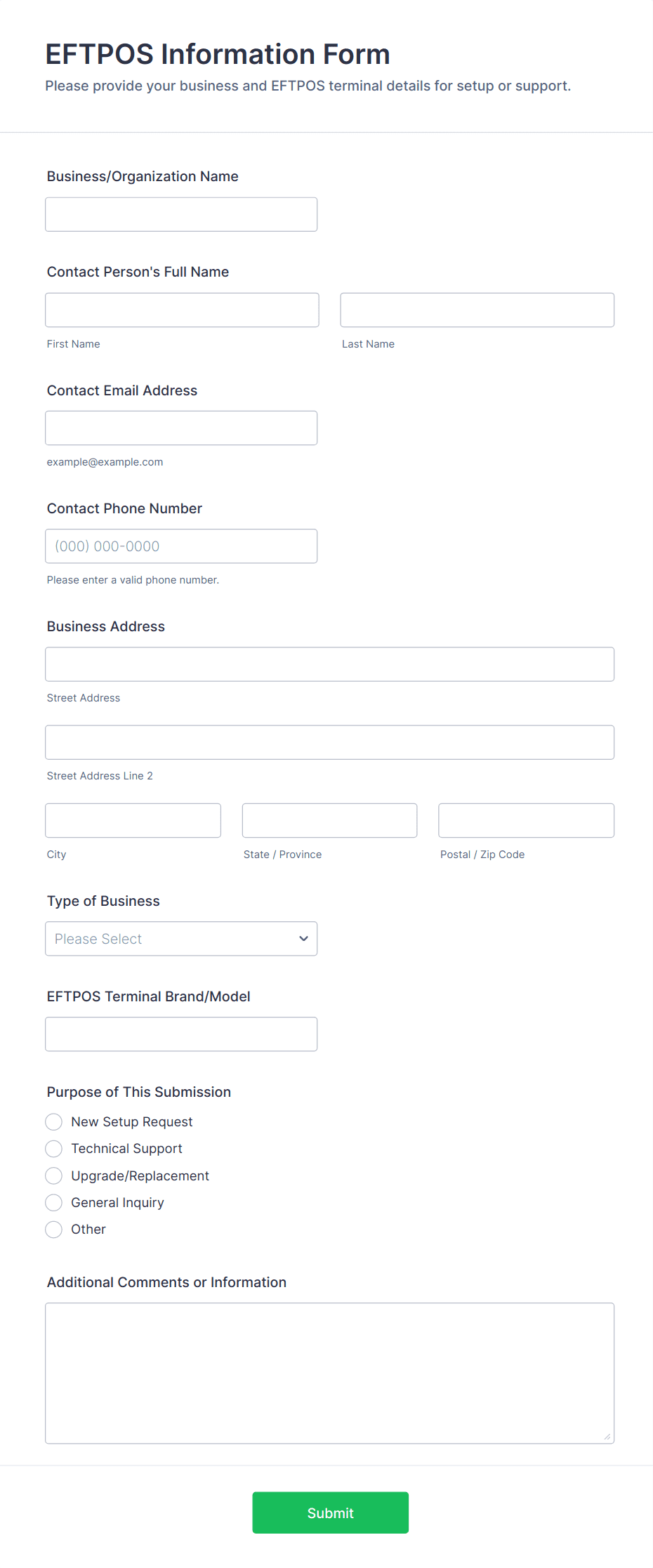 Information Form Templates are versatile digital forms designed to collect, organize, and manage a wide range of data from users, clients, or employees. These templates are commonly used for gathering personal details, contact information, feedback, preferences, or any other type of structured data required for business, educational, healthcare, or event-related purposes. Whether you need to onboard new clients, register participants for an event, collect feedback, or simply update records, information forms streamline the process by providing a standardized and efficient way to capture essential details.
