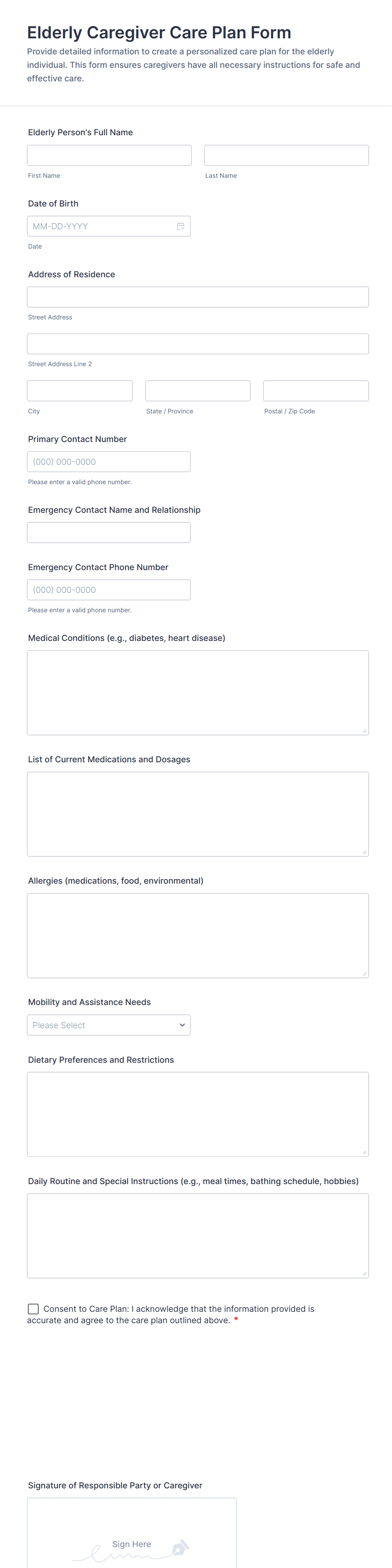 Caregiver forms are online forms used to collect information regarding childcare services, like parent contact information, childrens’ medical history and prescriptions, waivers, caregiver job applications, and more. Need to collect information, payments, or e-signatures for your childcare services? Choose a ready-made Caregiver Form template to do it instantly on any device.