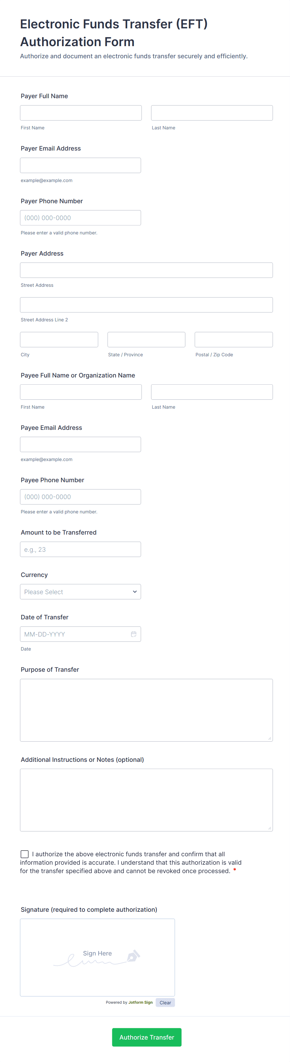 Payment forms are specialized online forms designed to securely collect payments, donations, fees, or orders from customers, clients, or donors. These forms are commonly used by businesses, nonprofits, educational institutions, and service providers to facilitate transactions such as product sales, event registrations, membership fees, or charitable contributions. Payment forms streamline the payment process by allowing users to enter their payment details directly on the form, often integrating with popular payment gateways like PayPal, Stripe, or Square. This eliminates the need for manual invoicing or offline payment collection, making transactions faster and more convenient for both parties.