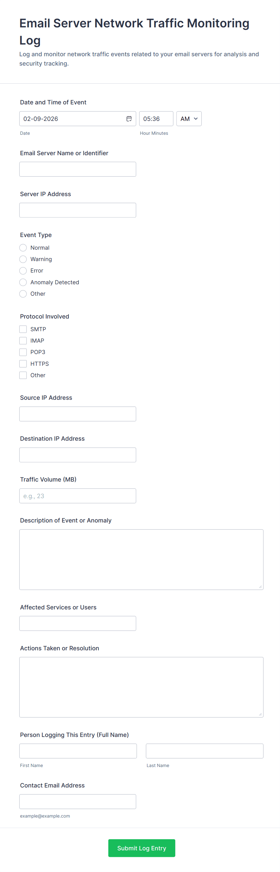 Monitoring Form Templates are specialized digital forms designed to help individuals and organizations systematically track, observe, and record data over time. These templates are commonly used in a variety of settings, such as workplace safety checks, equipment inspections, environmental monitoring, project progress tracking, health and wellness assessments, and compliance audits. By providing a structured way to collect and review information, monitoring forms ensure that critical data is captured consistently, making it easier to identify trends, address issues promptly, and maintain accountability. Whether you’re overseeing facility maintenance, monitoring employee performance, or tracking patient health, these templates streamline the process and reduce the risk of oversight.