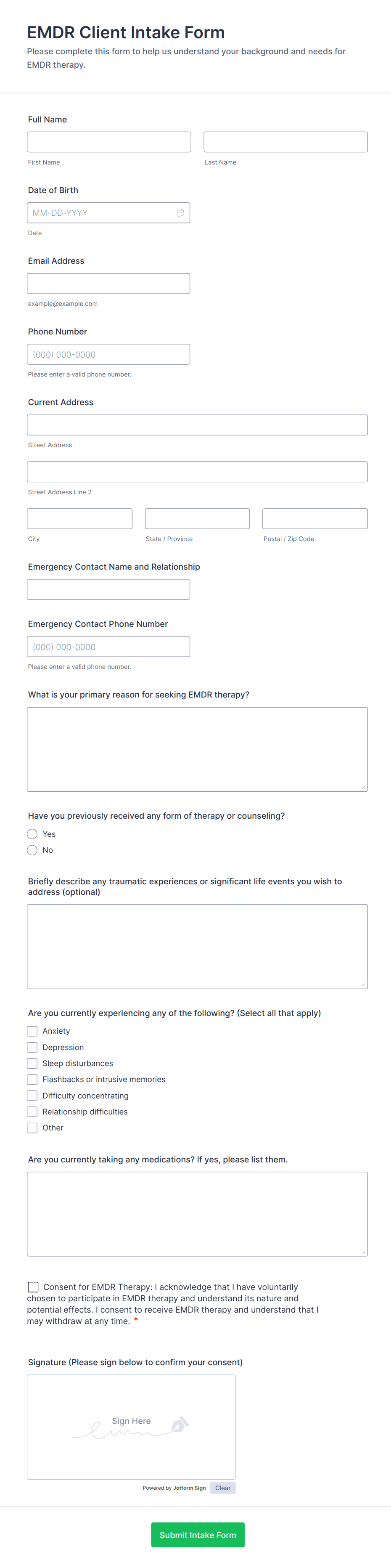 Collect client contact info and e-signatures online with a free Reiki Intake Form. Easy to customize, embed, and fill out on any device. Sync with 100+ apps.