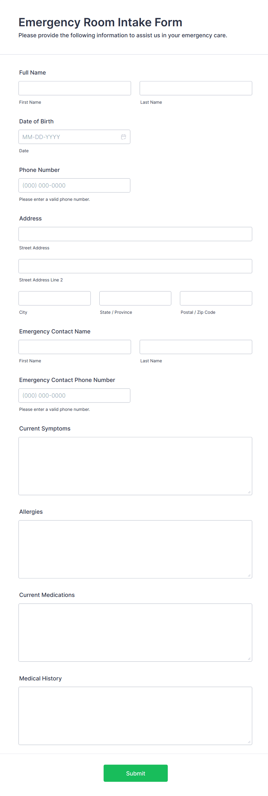 • Healthcare intake forms may require fields for medical history, allergies, and insurance.